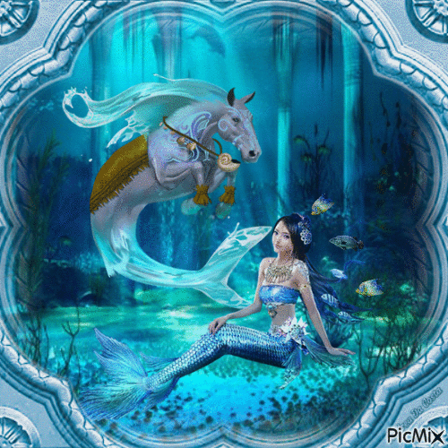 Just down beneath you Where the merfolk swim and play |