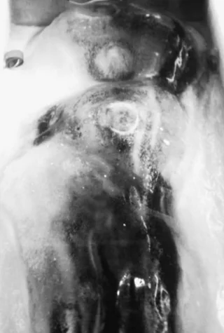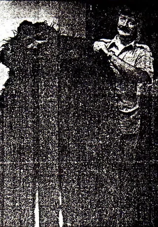 An alleged Bigfoot pelt photographed in the 1970s or 1960s. |