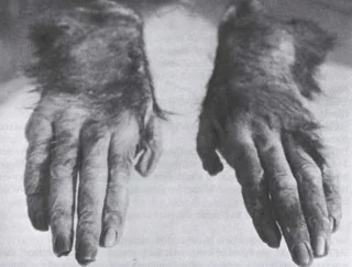 Preserved hands of the "manbear." Photo taken in 1957. |